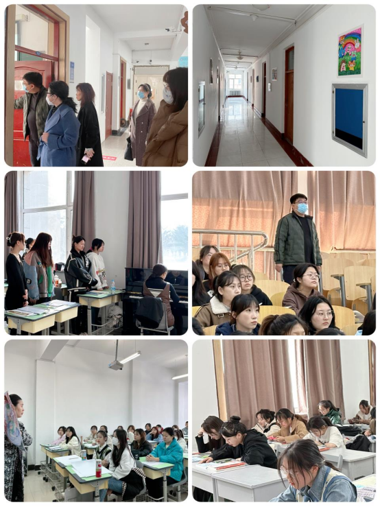 为加强教风学风管理,确保新学期教学工作顺利开展,3月6日,2022-2023学年度第二学期开课第一天,师范学院院长王海峰、副院长邱微微、学前教研室主任张丹、教学秘书李恩翠先后深入我院学生所在的四个教学楼开展新学期教学检查工作。