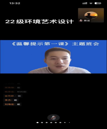 归来是春日,书生伴花开。寒假临近尾声,我们即将迎来崭新的春季学期,为保证安全有序开学,帮助同学们更好的开启新一年的校园生活,师范学院各专业班级于2月25日举办线上2023年春季学期返校报到《温馨提示第一课》主题班会活动。