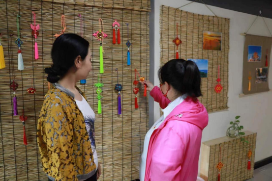 时间飞快地过去,在欢声笑语之间一个个漂亮精致的中国结被完成悬挂在墙面上展览,整个现场变得十分热闹。大家纷纷参观拍照,并且表达出对我们志愿者们的感激之情。