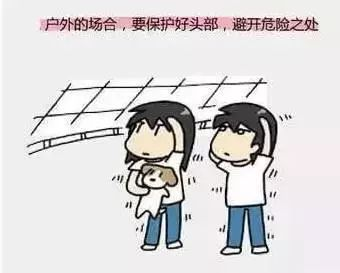 要保护好头部:在繁华街、楼区,最危险的是玻璃窗、广告牌等物掉落下来砸伤人,要注意用手或手提包等物保护好头部。