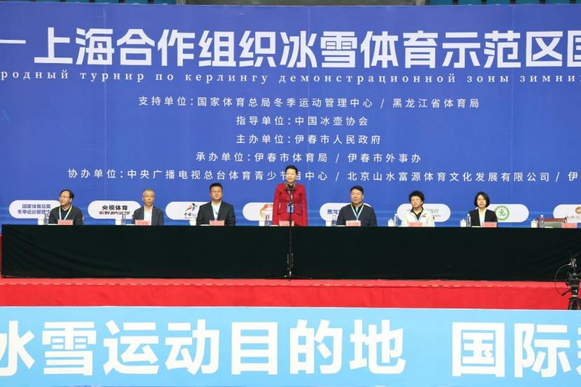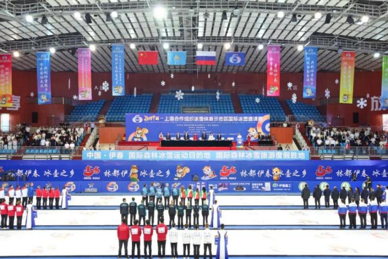 6月28日,由国家体育总局冬季运动管理中心、黑龙江省体育局支持,中国冰壶协会指导,伊春市政府主办,市体育局、市外事办、伊春冰壶学院承办的2025中国——上海合作组织冰雪体育示范区国际冰壶邀请赛在红松体育馆盛大开幕。