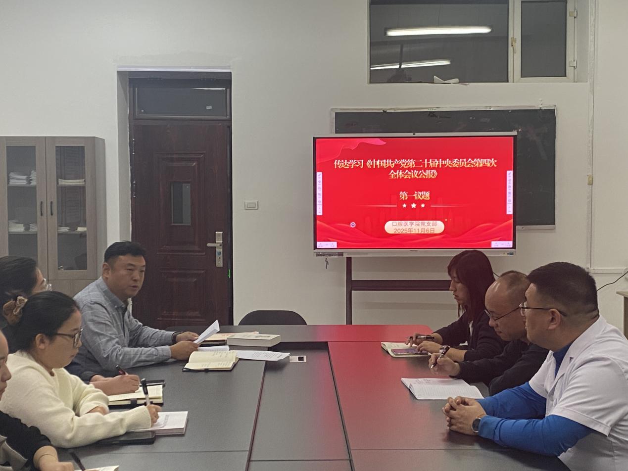 近日,按照我校党委工作部署,口腔医学院党支部组织师生共学二十届四中全会精神。