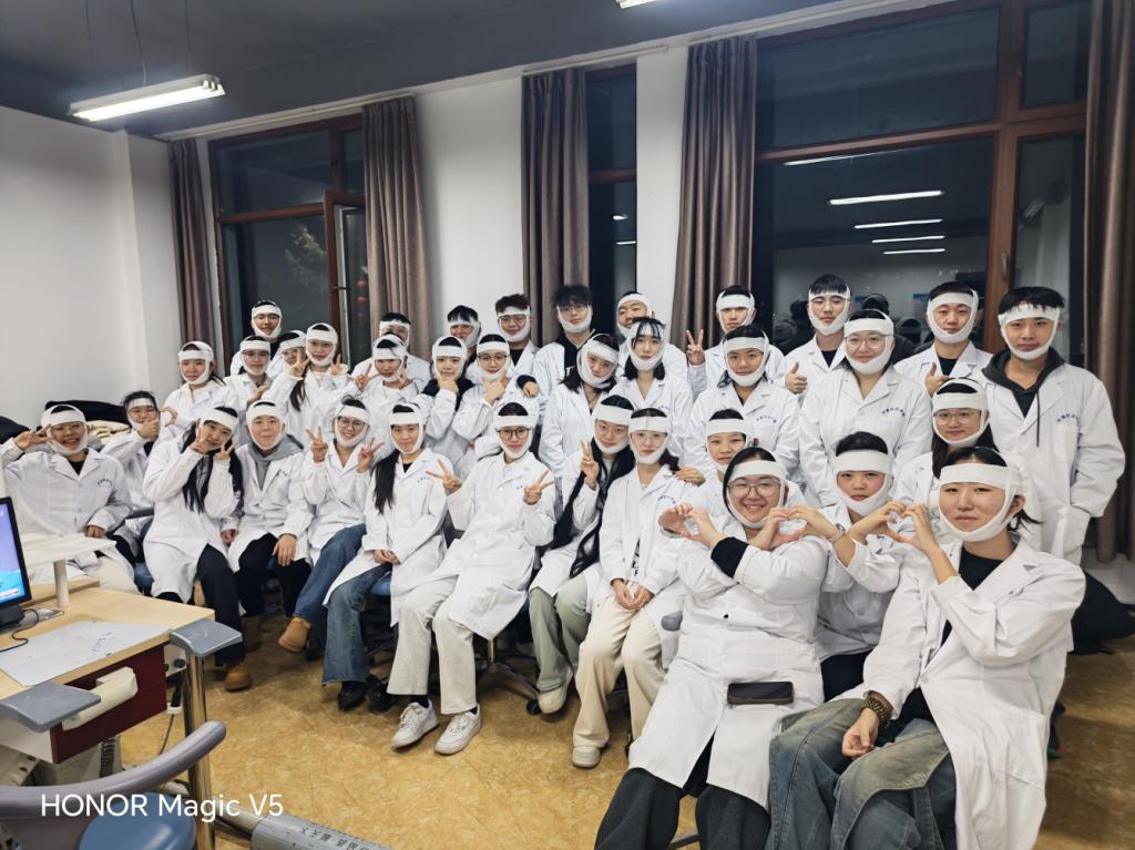 镜头里,白色绷带与白大褂交织出独特的“实训画风”,学生们的笑容里既有完成技能练习的成就感,也藏着对口腔医学专业的热忱。通过动手操作,同学们逐渐体会到“技能实训不只是练手法,更是培养‘以患者为中心’的职业意识。”