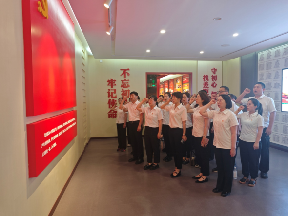 参观结束后,护理学院全体党员干部面对党旗庄严宣誓,赵丽娜同志带领党员们,重温入党誓词,一字一句,铮铮誓言,进一步激发了全体党员忠诚、干净、担当的品质。