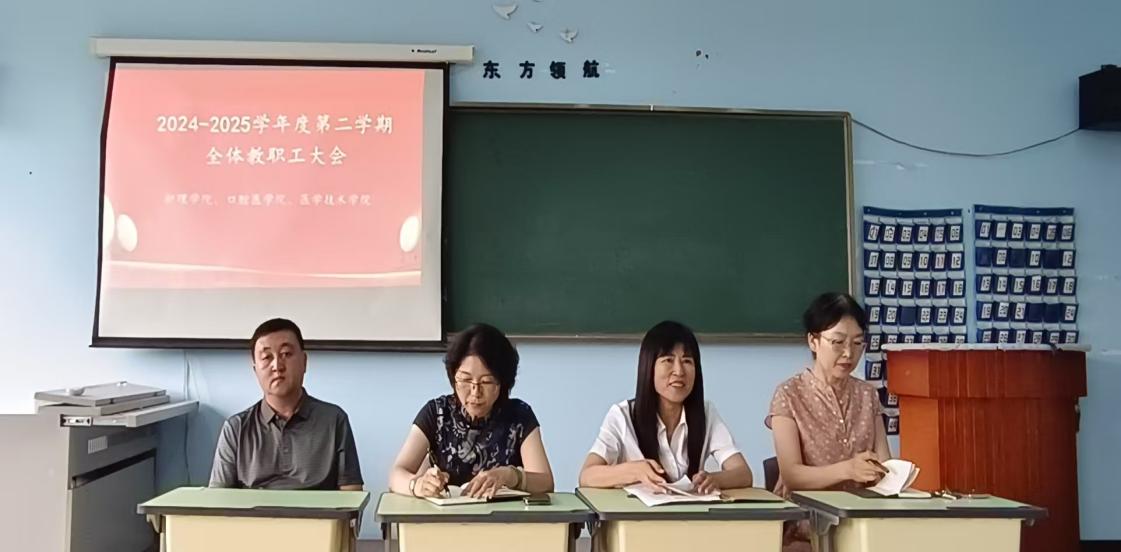 7月11日上午,护理、口腔及医学技术学院召开2025年上半年期末教职工大会,全面总结上半年工作成效,部署暑期及下一阶段重点任务。会议由学院院长韩金华主持,全体教职员工参会。
