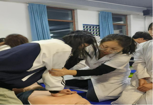 随后,指导老师王永琳、王玉雪和小导师们围绕高质量的心肺复苏急救技术动作要领、操作方法逐一向学生们进行操作展示,学生们纷纷踊跃学习并积极参与操作演练。大家很快准确掌握了心肺复苏的基本要领。
