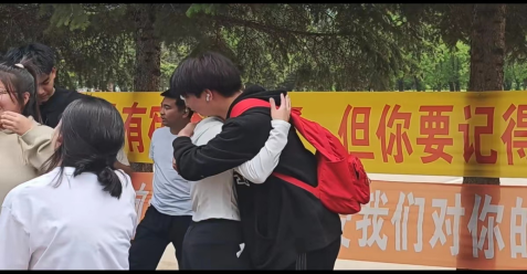 活动开始之前,辅导员们亲自悬挂充满祝福与期盼的条幅,为整个送别活动营造浓厚的氛围。