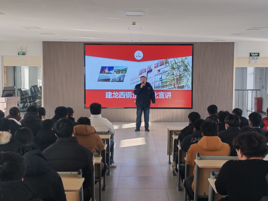 在智控中心,姜兆名主任向师生们介绍在我省领先的智能化钢铁冶金控制中心,这套系统可以实现炼铁全流程的智能化管理、控制和检测,极大的提高了生产效率,实现了生产的信息化。在能源中心的能源管控大厅,师生们观看了能源工艺的介绍视频,与现场的工程师进行了交流。在建龙西钢的培训中心,四位建龙西钢的高级工程师向大家开展了以建龙西钢企业文化、生产发展趋势、企业地缘建设理念为内容的主题讲座。