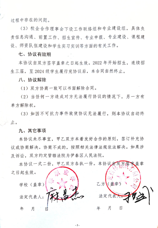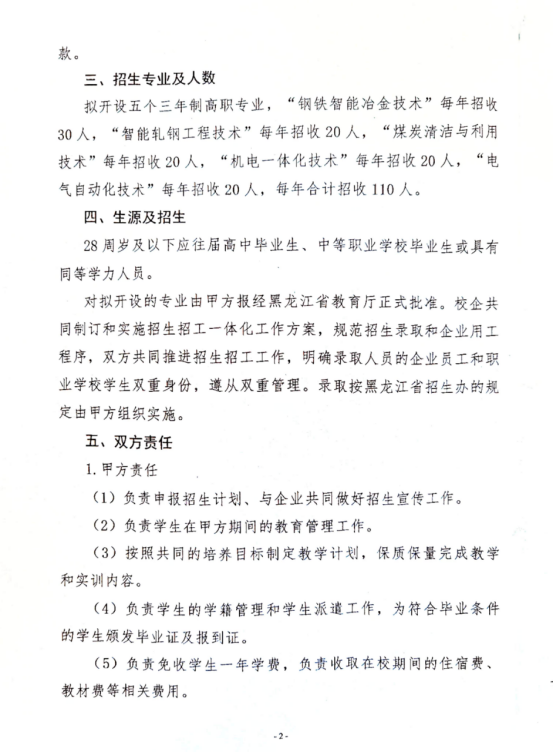 伊春职业学院与建龙西林钢铁有限公司合作办学协议