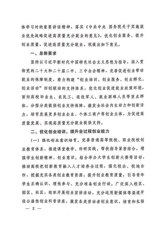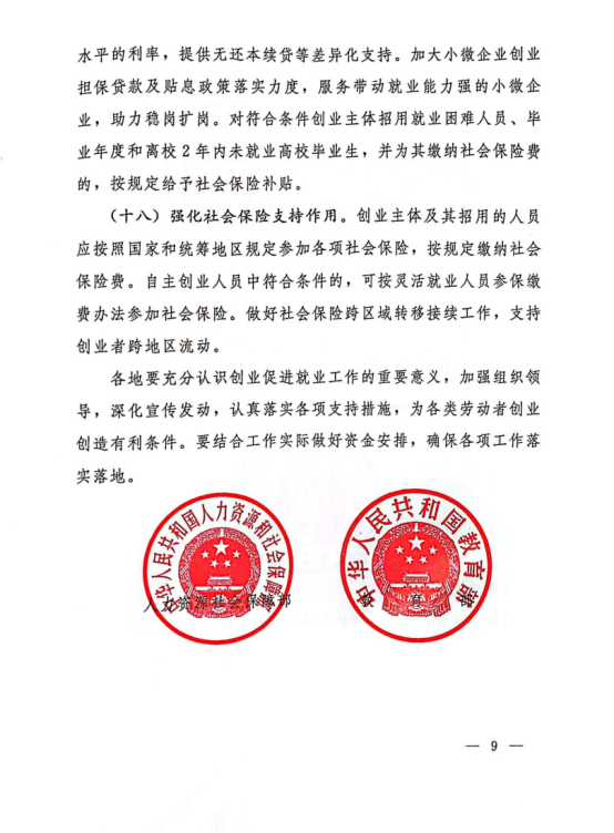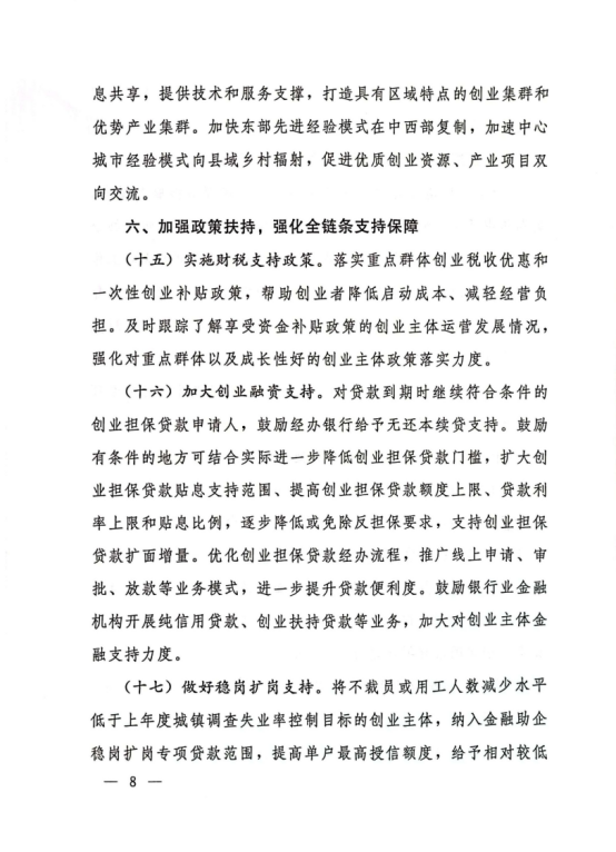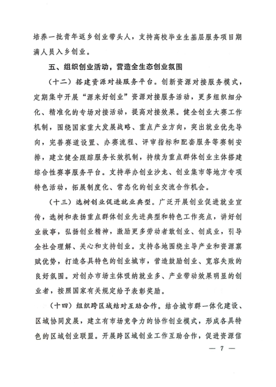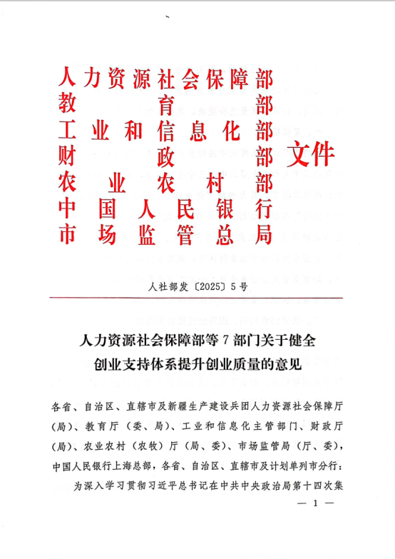 人社部等7部门关于健全创业支持体系提升创业质量的意见