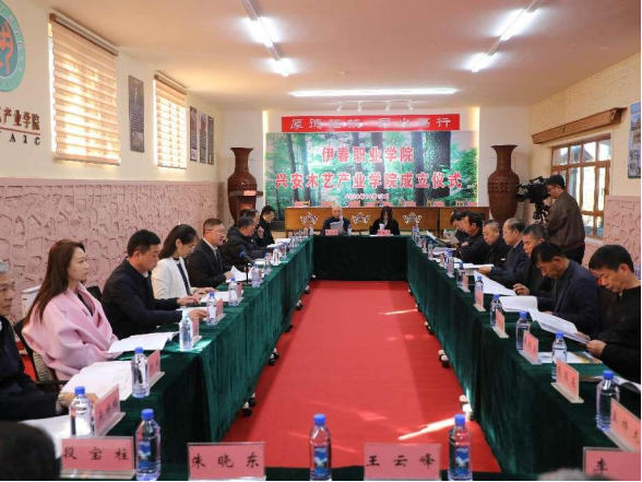 伊春职业学院兴安木艺产业学院由东北林业大学、伊春职业学院、黑龙江省工艺美术协会、黑龙江省工艺美术学会、黑龙江省伊春森工集团有限责任公司、伊春技师学院、乌翠区人民政府及市直有关部门、黑龙江省林业科学院伊春分院、伊春市美江木艺有限公司等有关企业共同发起成立,由“政、校、行、企、研”深度合作共建共管共享,产业学院以“协同育人、协同创新、协同发展”为核心,以“合作共享”为主线,以“人才培养、技能培训、项目合作、技术转移、产品开发”为载体,聚焦伊春木艺产业发展,融“人才培养培训、科学研究、技术创新、社会服务、企业发展、学生创业”等功能于一体,积极探索伊春木艺产业发展的“产业链、创新链、教育链、人才链”的有效衔接路径,吸引高校、行业协会和科研院所,服务伊春木艺产业发展。吸引企业参与高校的人才培养、技术培训、课程改革,为唱响“伊春——中国木艺之乡”品牌提供技术和人才支撑。