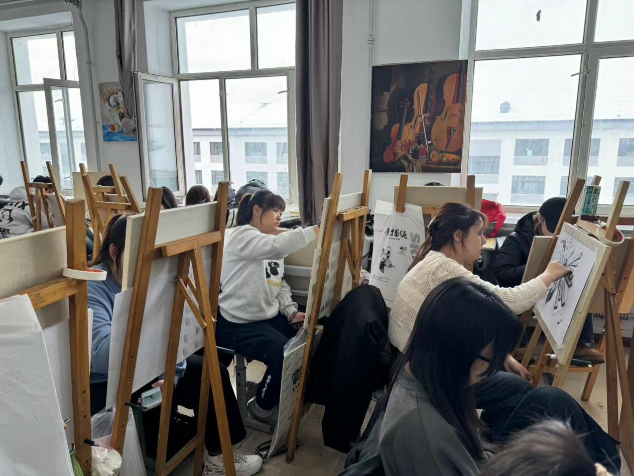 学生在专业画室进行造型绘画