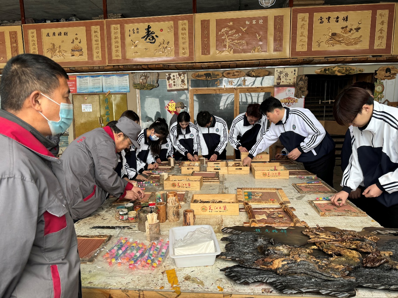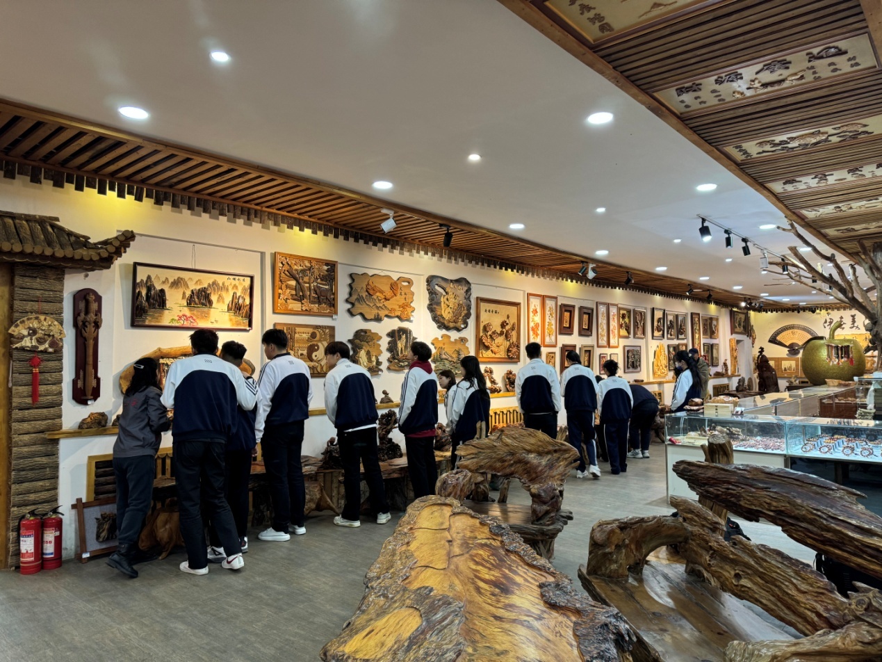学生在美江木艺实训基地见习