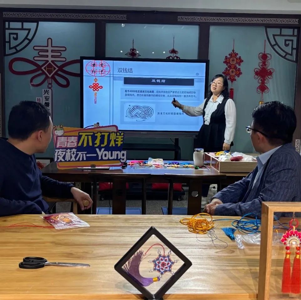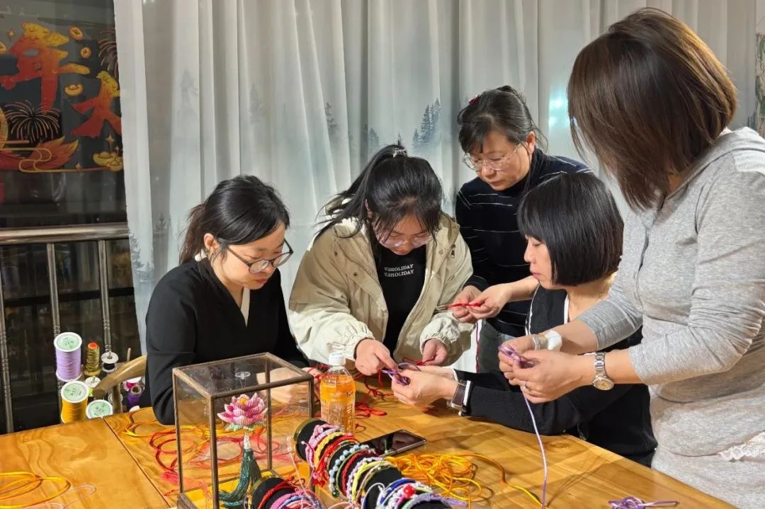 此次活动突破传统非遗教学模式,通过“理论微课+实践工坊”形式,让学员们在动手制作中感受传统结艺的对称美学与哲学内涵。活动伊始,于老师详细讲解了中国结的历史渊源和文化内涵,让学员们对中国结有了更深刻的理解。