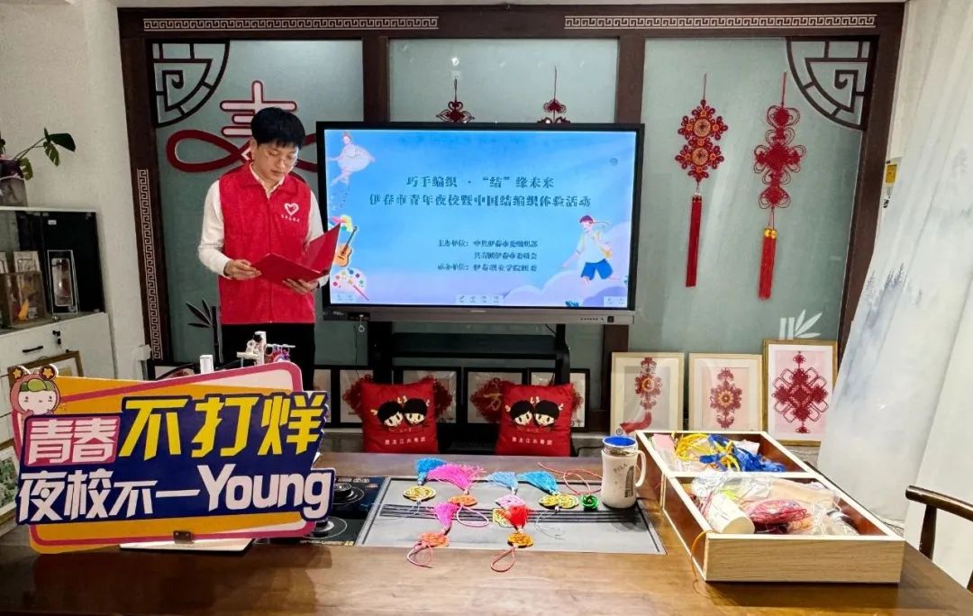 3月27日晚,市委组织部、团市委联合开展的“巧手编织·‘结’缘未来”伊春市青年夜校中国结编织体验活动在磐古结艺工作室举办,伊春职业学院于春华副教授为20余名来自不同领域的青年学员授课。