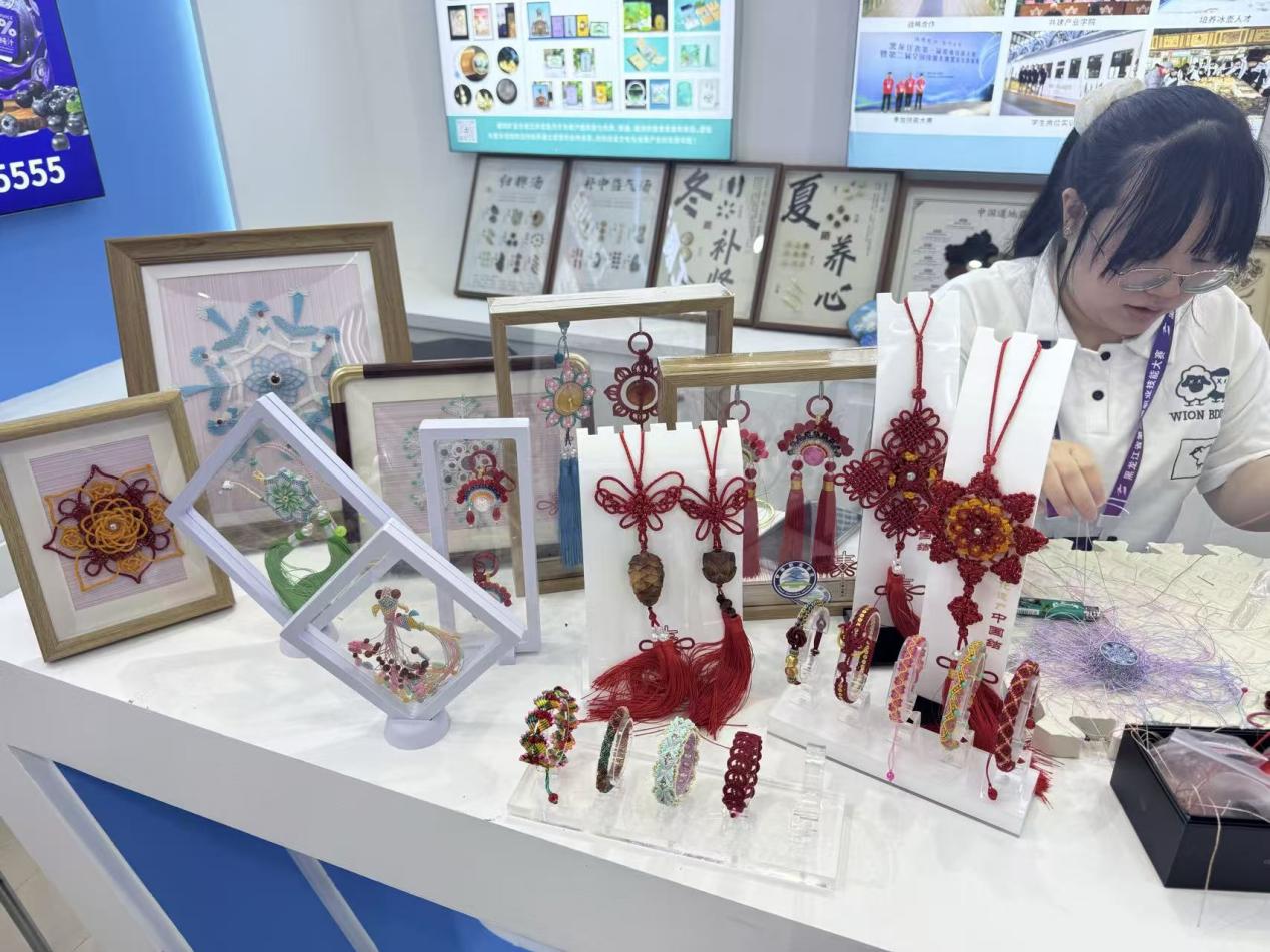 6月10日,阳光正好,微风不燥,我校兴安磐古绳结技艺技能大师工作室派遣两位优秀学员跟随伊春市人社局携带着一系列匠心独运的作品,亮相于黑龙江省第二届职业技能大赛成果展。这场盛会不仅汇聚了全省各地的职业技能精英,更成为了一场传统与现代技艺交相辉映的盛宴。而我校工作室的展示,无疑是这场盛宴中一颗璀璨的明珠,亮点频出,收获了全场一致的认可与称赞。