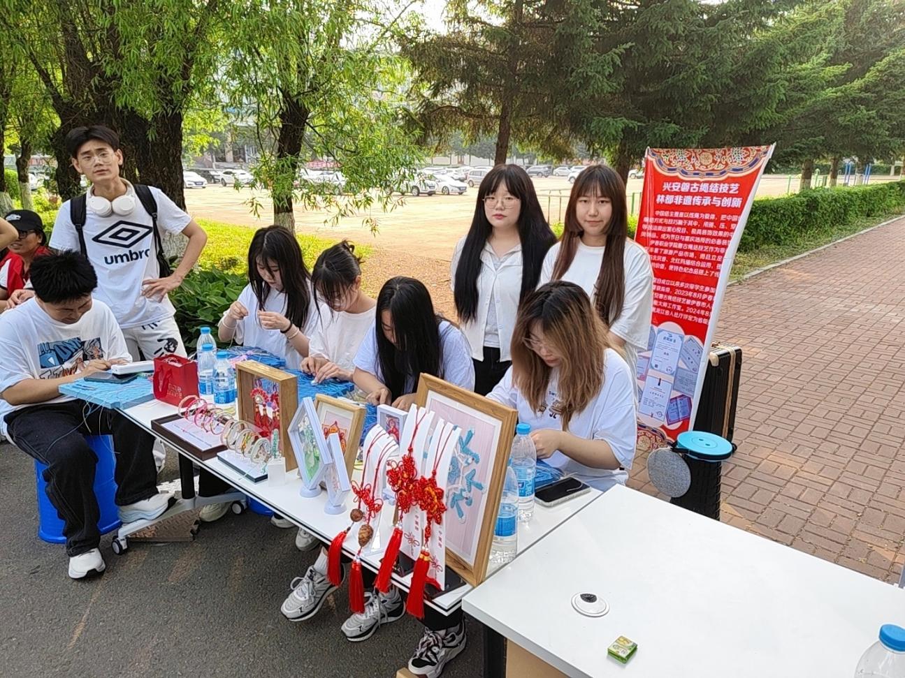 6月13日,校团委组织举办第二届2025“畅跑青春”校园跑打卡活动,中国结社团作为第二个校园跑站点参加此次活动。活动当天,社团成员们专注地编织着凤冠花嫁系列作品,指尖的彩线穿梭交织,编出各色精美的样式。